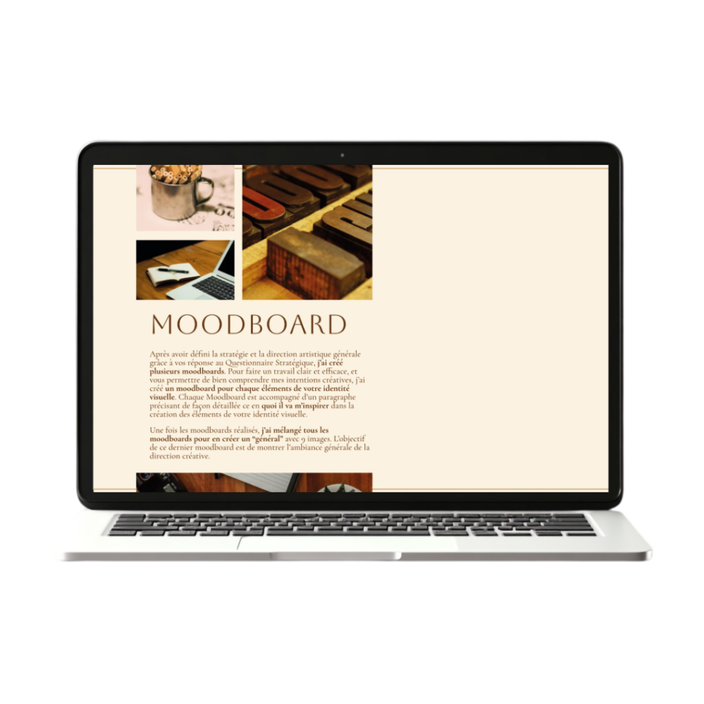 Votre dossier d’Empreinte : un document complet remis en fin d’accompagnement qui retrace l’ensemble de votre identité visuelle. Chaque choix y est détaillé et argumenté, pour vous permettre d’avoir une vision claire, cohérente et pleinement maîtrisée de votre image de marque, que vous pourrez ensuite vous approprier et utiliser en toute autonomie.