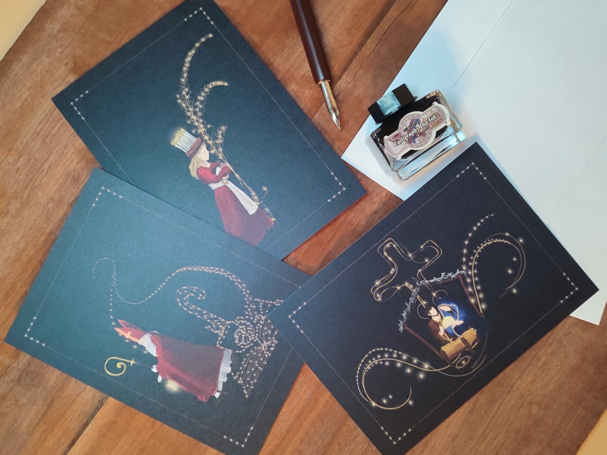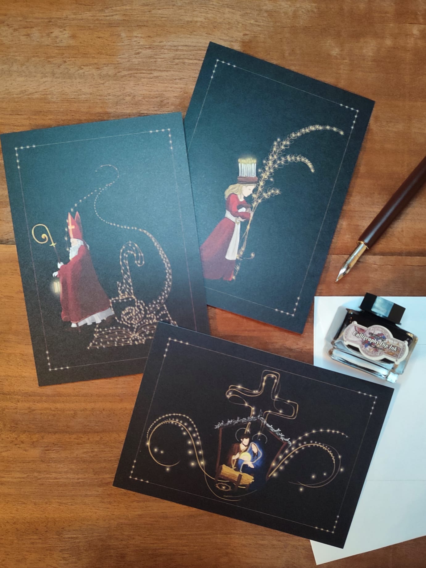 Carte Ste Lucie, St Nicolas et carte crèche, issues de la collection de noël. Impression imprafaite