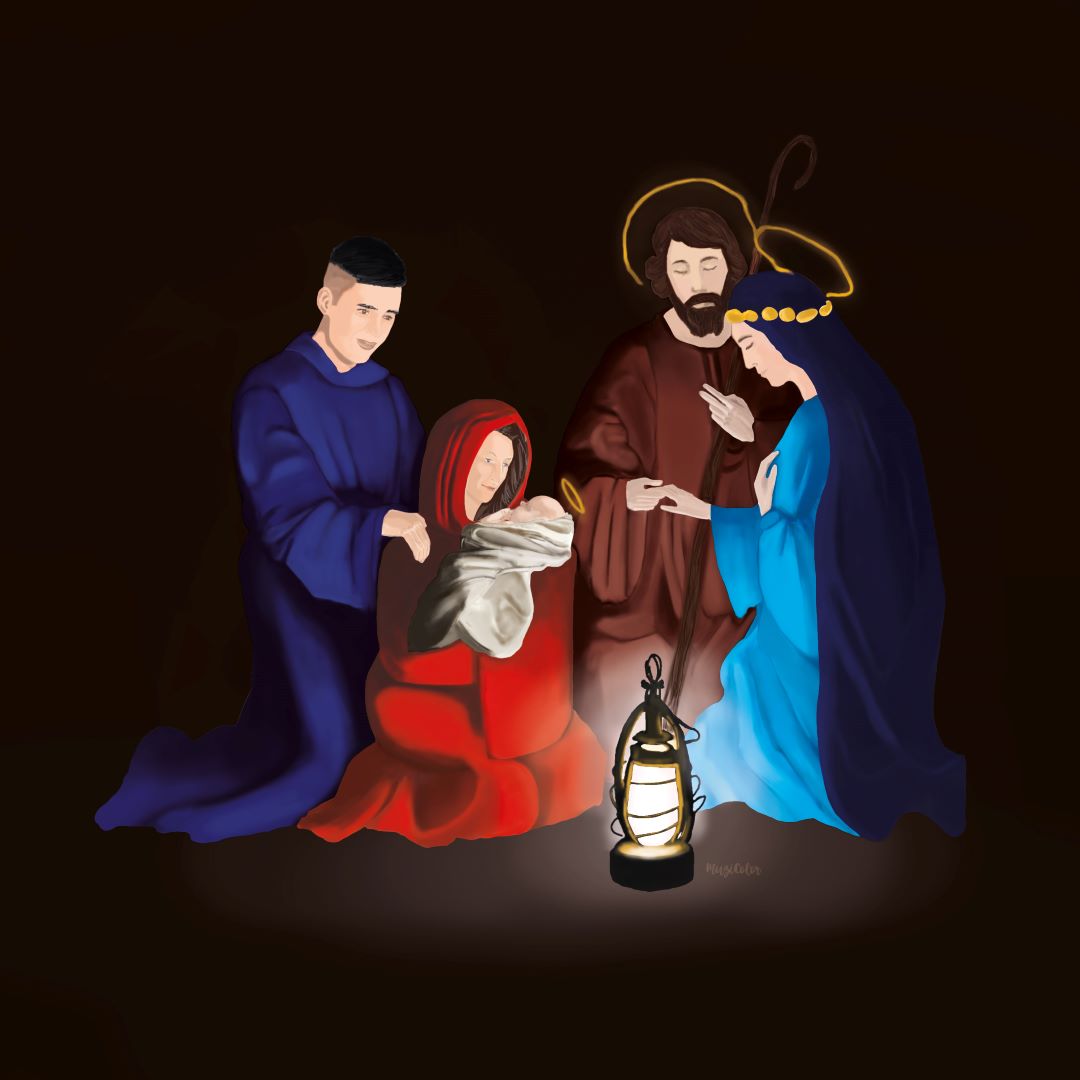 À vous, qui espérez, à vous qui priez sans cesse pour accueillir cet enfant, ce merveilleux don de Dieu, tant désiré et déjà aimé : Je vous porte dans mon cœur, et je tiens à vous faire présent de ce tableau méditatif au format numérique, peint en pensant à vous. J’y ai joint une prière qui m’a été inspirée lors d’un Noël et que je regardais l’Enfant Jésus dans la crèche en le suppliant « Si je pouvais Te prendre dans mes bras ». Vous trouverez aussi avec ces mots le témoignage de notre couple. Je prie pour que ce présent mette un peu de beaume sur votre cœur qui a soif d’aimer Dieu en prenant soin de lui à travers un enfant.